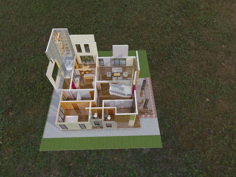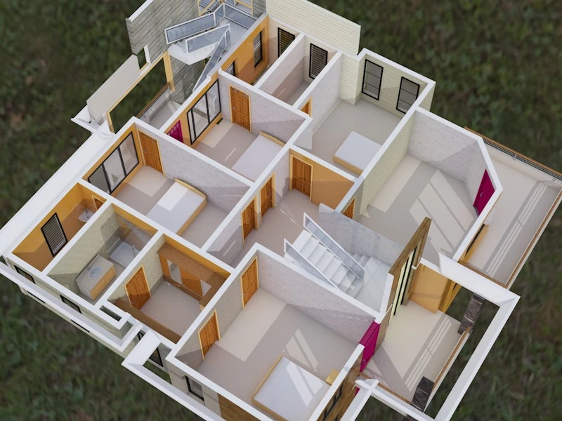 6 Bedroom House designed to sit on a piece of land with the shortest span being 60ft.The house occupies a 50x50 ft piece of land.